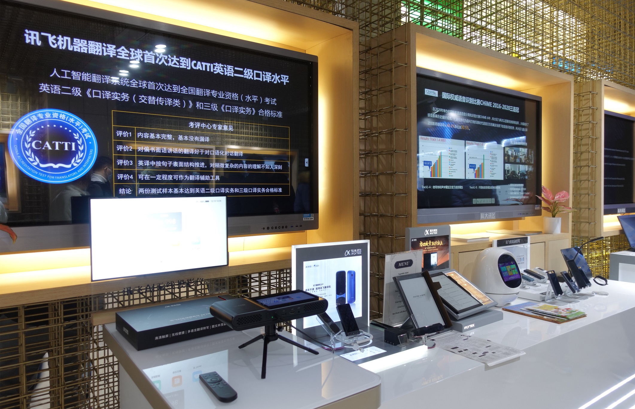 AI智慧會(huì)議室功能演示:除了常見的白板、投屏等功能,參會(huì)人員還能夠看到語音實(shí)時(shí)識(shí)別后在屏幕里轉(zhuǎn)寫成的字幕,同時(shí)可以提供語音翻譯服務(wù),讓大家切實(shí)感受到訊飛語音技術(shù)的魅力。