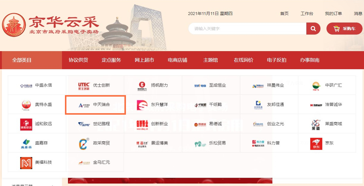 自2018年北京市政府采購平臺試運行時起,中天瑞合即憑借良好的商業(yè)信譽、完善的公司資質(zhì)、知名的品牌產(chǎn)品、專業(yè)的售后服務(wù)等方面的優(yōu)勢,順利通過平臺嚴(yán)苛的審核,與京東等知名企業(yè)共同成為首批入圍供應(yīng)商。