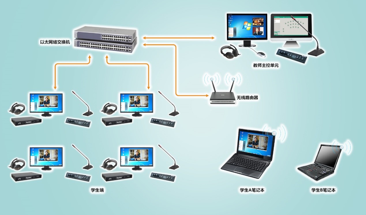 新建成的語音教室系統(tǒng)對界面展現(xiàn)做進一步優(yōu)化,無論是教師還是學生,不需要專業(yè)培訓即可上手使用,無師自通。系統(tǒng)采用可視化授課,教師講課的頭像畫面可以直接傳送到學生端屏幕上,將教師面部表情、發(fā)音口型清晰呈現(xiàn)眼前,枯燥的教學內容變得形象、直觀,很好地活躍課堂氣氛。